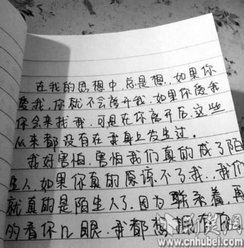 “在電視劇里總是有兩個人相愛卻不能在一起的劇情。那時候我就想既然相愛為什么不能在一起?可是現在,我好像懂了!薄@是20歲的娜娜(化名)4月2日寫的一篇日記。當天是他們分手后的第一天。為挽回心愛的理發師男友,她在9天里寫了2萬余字的日記,期望有一天男友會看到這些文字,明白她的深情。