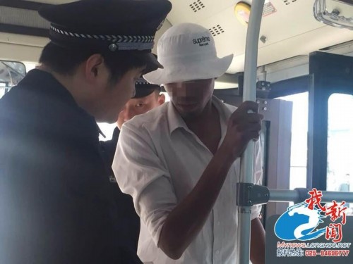 今天上午9:00在戶部街公交車站27路司機王師傅報警,在南京市江寧區氣象學院一名黑人男青年上公交車后在長江路突然在座位上要滑倒,幾位老人將他扶穩后,男子居然肆無忌憚在公交車廂里撒尿,司機隨即停車讓乘客下車并且報警,警方將男子帶下車。