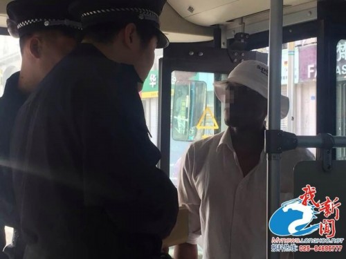 老外南京公交車上險滑倒被扶起后肆意撒尿