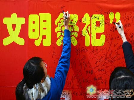 現場參與簽名活動的哈爾濱市民王永波說:“健康的祭祀方式將引導人們用文明行為表達對逝者的思念,用文明的行為扮靚文明的城市,文明祭掃提倡人與自然和諧相處,健康、時尚、文明又環保,我非常認同。”