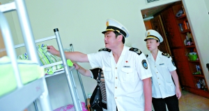 昨日,匯文中學(xué),衛(wèi)生監(jiān)督部門(mén)工作人員在學(xué)生宿舍里檢查衛(wèi)生。當(dāng)天,北京市對(duì)學(xué)校甲型H1N1流感的防控狀況開(kāi)展突擊抽檢。記者 韓萌 攝
