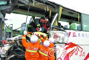 事故發(fā)生后,消防中隊指揮員立即對現(xiàn)場情況進行偵查,發(fā)現(xiàn)事故車輛分別為1輛旅游大巴和1輛垃圾清掃車,兩車共有4名被困人員,而且都有不同程度的受傷。經(jīng)過20分鐘的努力,兩輛車的4名被困人員全部救出,交由120救護車緊急送往醫(yī)院治療。