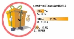 近日,華聲論壇發(fā)起的一項(xiàng)有關(guān)“教師節(jié)送禮”的調(diào)查顯示,90.9%的網(wǎng)友選擇教師節(jié)不應(yīng)該給教師送禮,85.5%的網(wǎng)友給老師送禮是希望老師能多照顧自己的小孩。