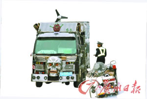 據(jù)常平交警大隊(duì)的一位交警介紹,楊祖湘的車之所以會(huì)被交警查扣,那是因?yàn)樗{駛該車上路行駛。因?yàn),按照有關(guān)規(guī)定,經(jīng)過如此大規(guī)模改裝的貨車不允許上路行駛。