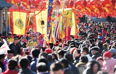 十三檔花會拜廟走會、民俗表演、手工絕活……昨日,在八大處新春祈福廟會上,眾多藝人為游客再現了明清時期老北京“原汁原味”的春節廟會。據北京假日辦統計數據,昨日八大處公園廟會接待6萬人,同比增長20%。