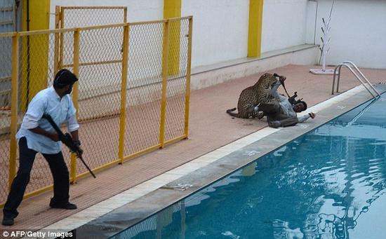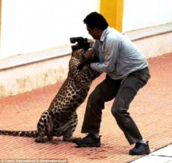 2016年2月8日報道,印度班加羅爾,一頭野生豹子突然奔入學校傷人,共有6人受不同程度傷害。其中一名動物學家遭到突然攻擊,該男子拿起望遠鏡搏斗這一瞬間被拍攝下來。