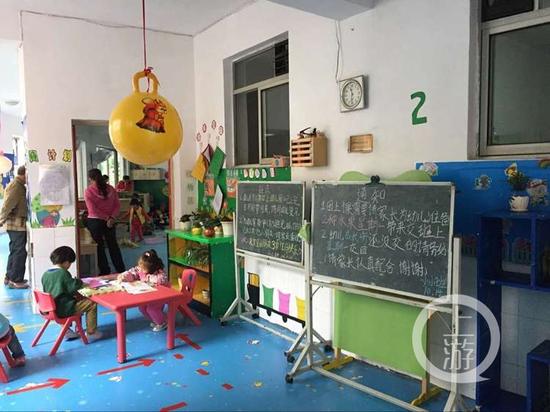紅花崗區(qū)試驗(yàn)幼兒園每個班級門口都擺放著小黑板,班主任把幼兒園的重要通知寫在上面,提醒家長注意。(受訪者供圖)