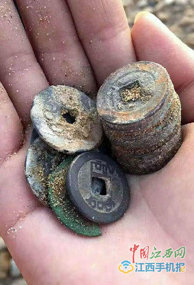 贛江邊驚現大量銅錢民眾哄搶 警方追繳