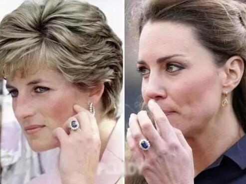 而后凱特王妃的訂婚戒指正是戴安娜王妃1981年的訂婚戒指,是枚白金藍寶石戒指,中間是一顆18克拉橢圓形藍寶石,周圍鑲14顆小鉆石。