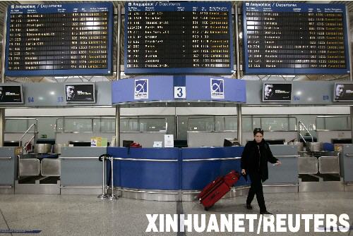 12月12日,在希臘雅典機場,一名旅客拖著箱子離開空無一人的服務臺。當日,希臘工人對政府修改養老金制度表示不滿,舉行為期24小時的全國性罷工以示抗議。 新華社/路透