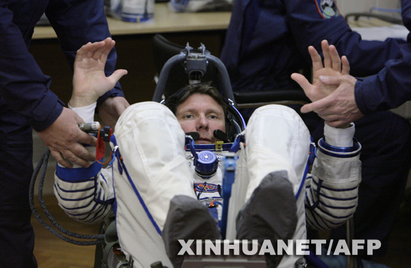 3月26日,在哈薩克斯坦拜科努爾發(fā)射場,全球第5名“太空游客”、美國富翁查爾斯·西蒙尼做升空準(zhǔn)備。新華社/法新