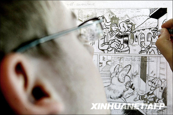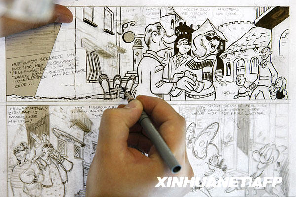 6月9日,在荷蘭哈勒莫梅爾的霍夫多夫,繪圖人員在工作室內繪制新一輯唐老鴨漫畫。新華社/法新