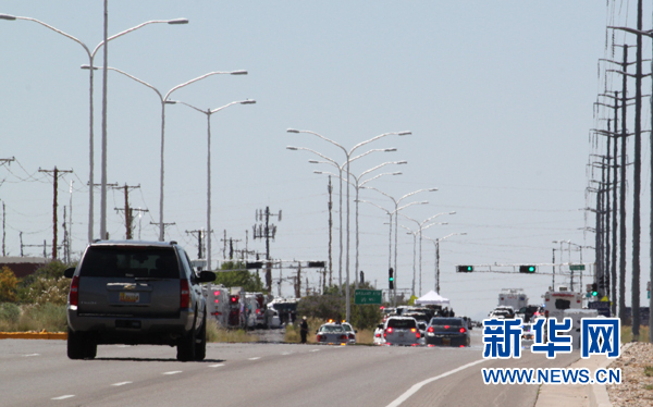 7月12日,美國新墨西哥州阿爾伯克基警方封鎖了槍擊事件現場附近的交通。阿爾伯克基一光纖廠當天發生槍擊事件,造成6人死亡,4人受傷。新華社/美聯