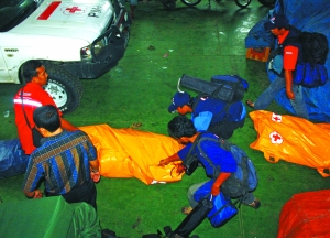 26日,救援人員整理運尸袋。由于受災(zāi)島嶼偏遠,救援困難。
