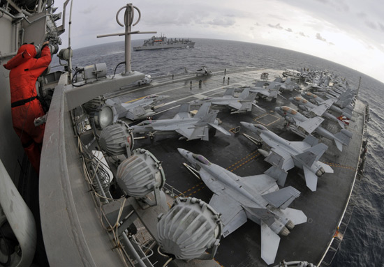 12月2日,美國海軍喬治-華盛頓號(hào)航母戰(zhàn)斗群在朝鮮半島西部海域進(jìn)行物資補(bǔ)給作業(yè),為即將到來的美日聯(lián)合軍演做準(zhǔn)備。喬治-華盛頓號(hào)航母剛剛結(jié)束與韓國海軍進(jìn)行的為期三天的黃海聯(lián)合軍演。