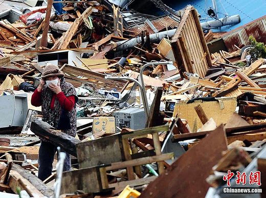 3月16日上午,一名老人在日本巖手縣大船渡市“3.11日本東北大地震”引發(fā)的大海嘯災(zāi)區(qū)尋找可用物品。中新社發(fā) 侯宇 攝
