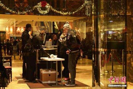 當(dāng)?shù)貢r(shí)間12月27日晚,紐約特朗普大廈出現(xiàn)可疑包裹。紐約警方對(duì)周邊民眾進(jìn)行緊急疏散,并派拆彈小組前往,經(jīng)排查后已確認(rèn)可疑包裹內(nèi)的物品為玩具。圖為進(jìn)入特朗普大廈的游客正在接受安檢。 中新社發(fā) 袁月明 攝