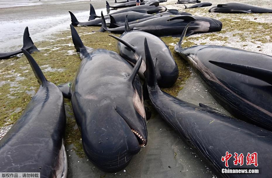 當地時間2月10日,新西蘭金色海灘數百頭鯨魚擱淺海灘。