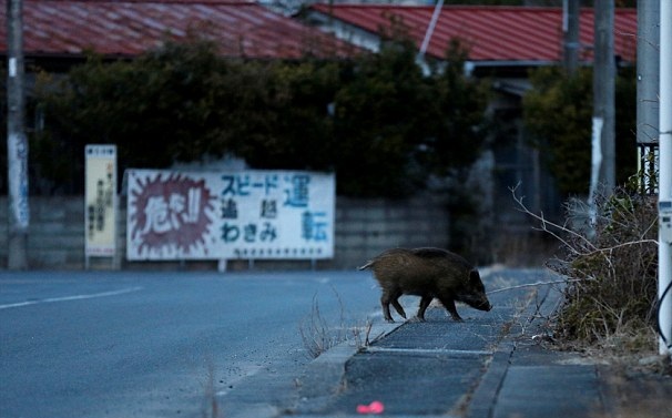 【環(huán)球網(wǎng)綜合報(bào)道】據(jù)英國(guó)《每日郵報(bào)》3月9日?qǐng)?bào)道,近日,有數(shù)百只野豬正流浪在日本福島隔離區(qū)空蕩的大街上,有的還到浪江町無人居住的海邊小鎮(zhèn)雜草蔓生的后院里搜尋食物。這片地區(qū)距離福島發(fā)生核泄漏的核電站僅有2.5英里(約4千米)。市長(zhǎng)表示:“已經(jīng)搞不清楚這個(gè)小鎮(zhèn)是由人管轄,還是野豬管轄了。”