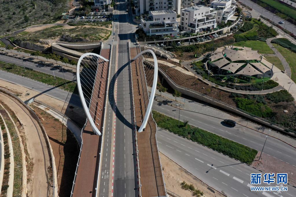 這是2021年1月8日在以色列莫迪因拍攝的全面“封城”期間空蕩的道路(無人機照片)。新華社發(吉爾·科恩·馬根攝)