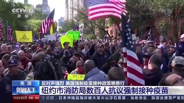 對此,當地時間28日,紐約市消防局數百名消防員在市長官邸外舉行抗議活動,反對強制接種疫苗令——一些抗議者表示,因為不接種疫苗就丟掉工作是不公平的。