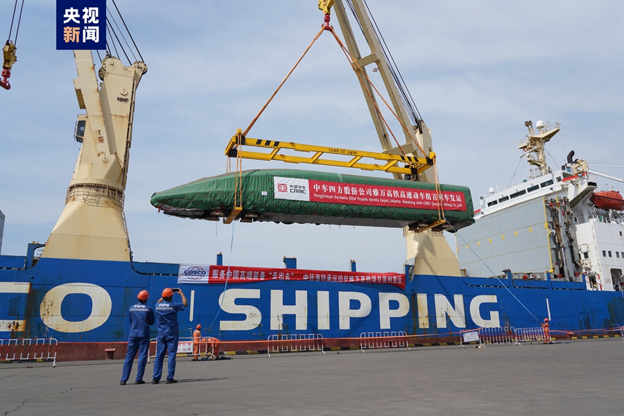 雅萬高鐵項目的列車,包括11組高速動車組和1組綜合檢測列車,均已在中車四方完成生產制造。此次在青島港裝船啟運的是雅萬高鐵首批發運車輛,預計將于8月底抵達印尼雅加達港,后續通過公路運輸運往萬隆德卡魯爾動車段。剩余車輛計劃在2023年初之前分批發運。