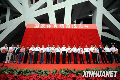 6月28日,與會(huì)領(lǐng)導(dǎo)與獲頒紀(jì)念證書(shū)的國(guó)家體育場(chǎng)參建單位代表合影。當(dāng)日,國(guó)家體育場(chǎng)(鳥(niǎo)巢)舉行落成典禮。國(guó)家體育場(chǎng)是2008年第29屆夏季奧運(yùn)會(huì)主體育場(chǎng),位于奧林匹克公園內(nèi),建筑面積25.8萬(wàn)平方米,賽時(shí)坐席9.1萬(wàn)個(gè),北京奧運(yùn)會(huì)的開(kāi)閉幕式、田徑比賽和足球決賽將在此舉行。新華社記者 羅曉光 攝