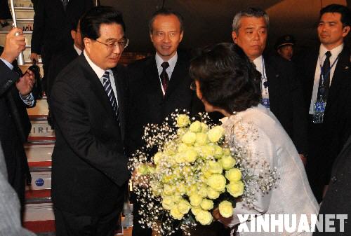 7月7日,國家主席胡錦濤乘專機抵達(dá)日本北海道首府札幌,出席即將在洞爺湖舉行的八國集團同發(fā)展中國家領(lǐng)導(dǎo)人對話會議。 新華社記者樊如鈞攝