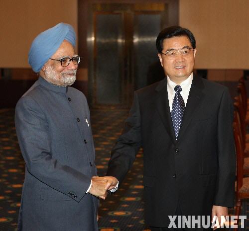 7月8日,國家主席胡錦濤在日本北海道首府札幌會見印度總理辛格。 新華社記者 劉衛(wèi)兵 攝