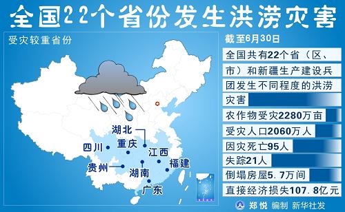 圖表:全國22個省份發生洪澇災害。新華社 發