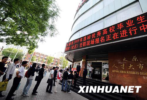 5月5日,在太原市人才大市場(chǎng)報(bào)名點(diǎn),報(bào)考“村官”的大學(xué)生排隊(duì)進(jìn)場(chǎng)。5月4日至8日,山西太原市2009年選聘優(yōu)秀高校畢業(yè)生到村(社區(qū))任職進(jìn)行報(bào)名。據(jù)了解,2009年山西省將選聘9030名優(yōu)秀高校畢業(yè)生到村(社區(qū))任職。新華社記者燕雁攝