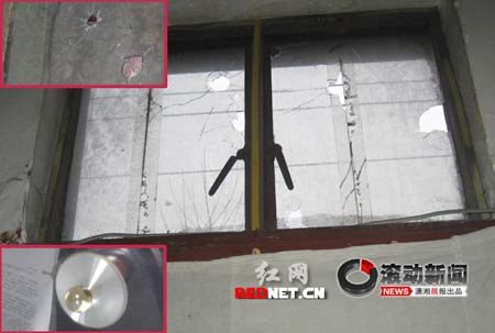被拆遷戶墻上的窟窿及玻璃圓珠。