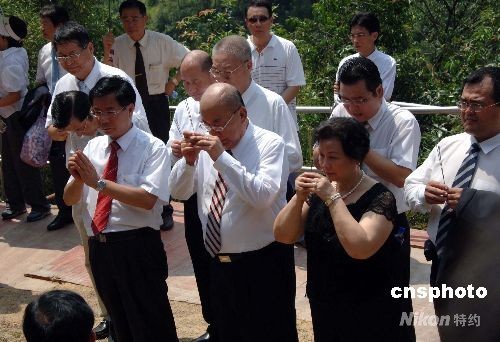 八月十四日,中國(guó)國(guó)民黨主席吳伯雄回到祖籍地--福建永定縣下洋鎮(zhèn)思賢村,前往祖墳祭拜祖先。圖為吳伯雄夫婦一行向祖墳上香。 中新社發(fā) 鄭祚聲 攝
