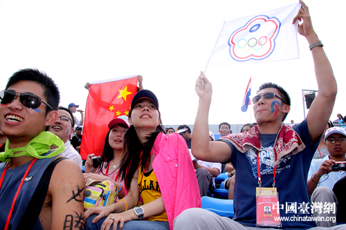 這些臺(tái)灣青年一早就在場(chǎng)外高舉中華臺(tái)北隊(duì)隊(duì)旗,臉上畫(huà)滿(mǎn)“CT”(chinese taipei的英文首字母縮寫(xiě))的紅藍(lán)色油彩,手捧“中華臺(tái)北隊(duì)加油”的紙板。全副武裝,只希望讓臺(tái)北女壘的姑娘們找到“家門(mén)口”的感覺(jué)。