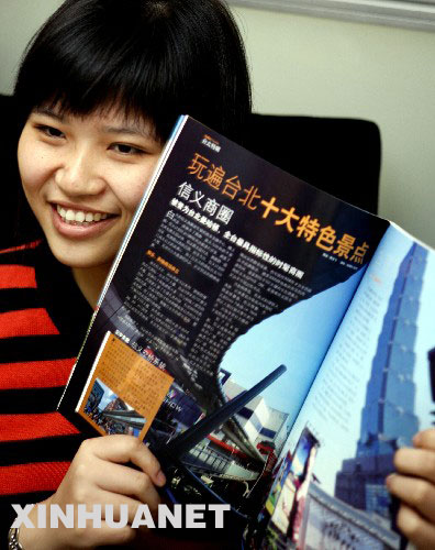 11月26日,一位女孩在介紹《暢游臺(tái)灣》雜志。 近日,《暢游臺(tái)灣》雜志在上海面世。該雜志深入介紹了臺(tái)灣的自然風(fēng)光、歷史人文、時(shí)尚消費(fèi)、生活模式等。《暢游臺(tái)灣》雜志由國(guó)臺(tái)辦主辦,臺(tái)灣旅奇國(guó)際有限公司經(jīng)營(yíng)、發(fā)行。 新華社記者張明攝
