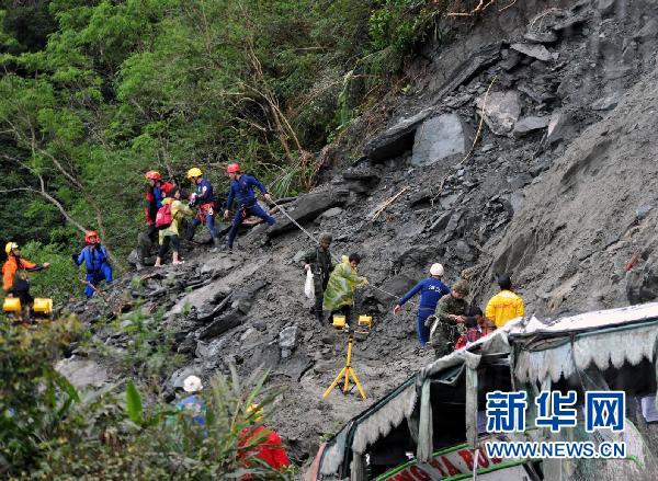 當日,因臺風導致臺灣蘇花公路塌方而被困的100多位大陸游客已陸續被救出安置,另有23位游客失去聯系,50多位游客等待救援,截至記者發稿時,救援仍在繼續。新華社記者 何俊昌 攝