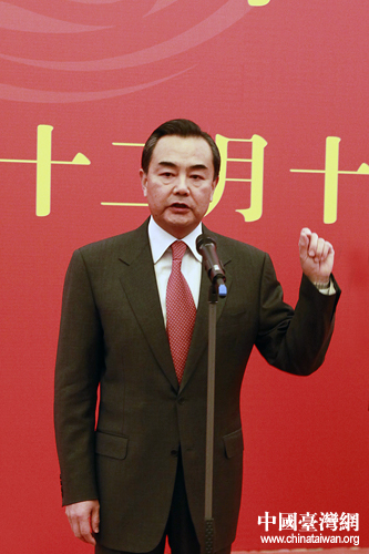 12月16日,紀(jì)念海峽兩岸關(guān)系協(xié)會(huì)成立20周年招待酒會(huì)在北京人民大會(huì)堂舉行。圖為中共中央臺(tái)辦、國務(wù)院臺(tái)辦主任王毅在招待酒會(huì)上致辭。(中國臺(tái)灣網(wǎng) 王偉 攝)