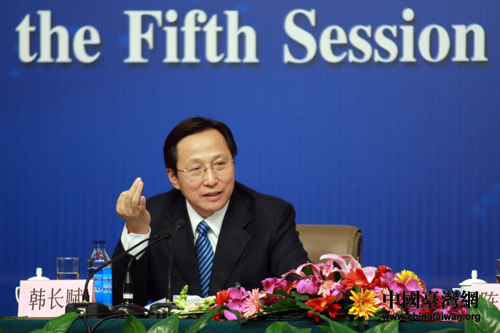 十一屆全國人大五次會議舉行記者會,農業部部長韓長賦回答中外記者的提問。(中國臺灣網 王偉 攝)