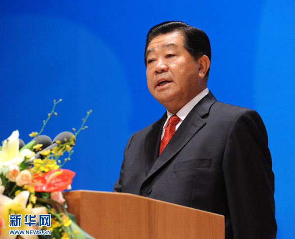 6月17日,第四屆海峽論壇大會在福建廈門海峽會議中心隆重舉行。中共中央政治局常委、全國政協主席賈慶林出席并致辭。 新華社記者 饒愛民 攝