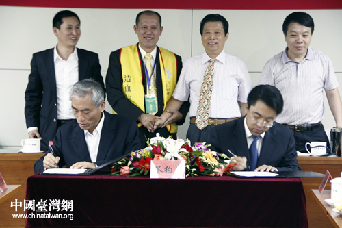 協(xié)議簽署后,京臺(tái)兩地光彩促進(jìn)會(huì)代表合影。(中國(guó)臺(tái)灣網(wǎng) 楊麗 攝)