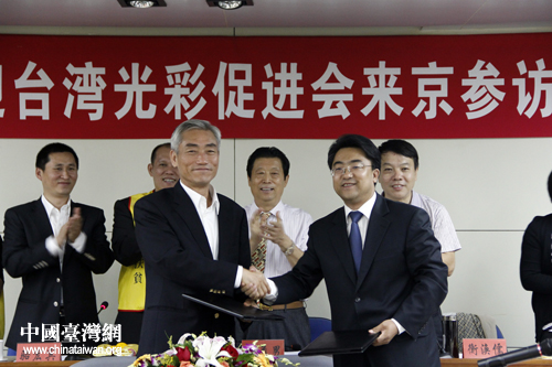 24日上午,北京市光彩事業(yè)促進(jìn)會(huì)與臺(tái)灣光彩促進(jìn)會(huì)在北京工商聯(lián)大廈簽署了兩地光彩事業(yè)友好對(duì)接合作協(xié)議。(中國(guó)臺(tái)灣網(wǎng) 楊麗 攝)