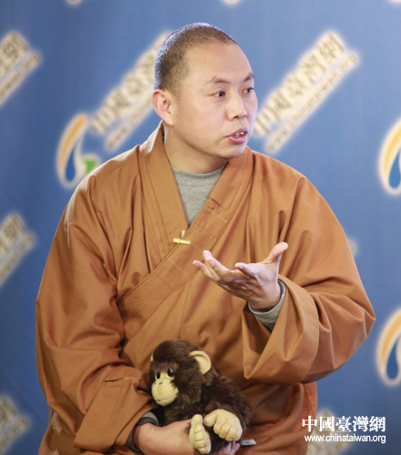 延參法師攜其新書做客中國臺灣網,法師向網友詳細介紹了他的慈善理念。(中國臺灣網 王偉 攝)