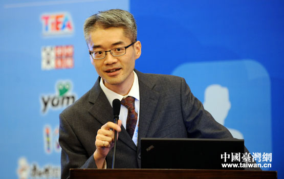 2013年(第五屆)兩岸互聯(lián)網(wǎng)發(fā)展論壇8月13日下午在北京盛大開(kāi)幕,靈狐科技有限公司首席戰(zhàn)略咨詢(xún)師費(fèi)悅明發(fā)表主題演講,認(rèn)為應(yīng)利用電子商務(wù)促進(jìn)兩岸產(chǎn)業(yè)發(fā)展。(中國(guó)臺(tái)灣網(wǎng) 于斯文 攝)