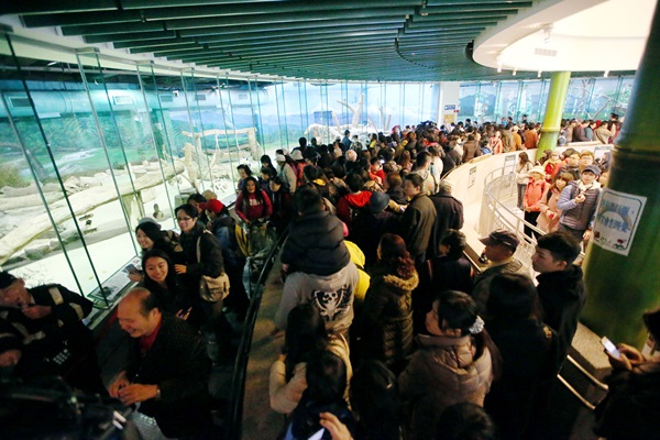 動(dòng)物園門口清晨5、6時(shí)就出現(xiàn)搶看“圓仔”的頭香客,每個(gè)人都是全副武裝,包得緊緊就為了看“圓仔”。截至動(dòng)物園9時(shí)開園前,排隊(duì)人龍已經(jīng)延伸至捷運(yùn)動(dòng)物園站,約有500、600人。