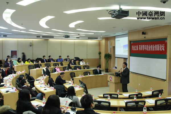 中國臺灣網(wǎng)1月21日北京消息 1月21日上午,由清華大學(xué)學(xué)生海峽兩岸交流協(xié)會舉辦的“興業(yè)之陸 兩岸青年就業(yè)創(chuàng)業(yè)創(chuàng)新論壇”在清華大學(xué)金融學(xué)院舉行。本次論壇主要圍繞兩岸青年共同面對的職業(yè)發(fā)展問題,結(jié)合臺生在陸就業(yè)情況等探討兩岸就業(yè)創(chuàng)業(yè)環(huán)境、新興產(chǎn)業(yè)發(fā)展及青年創(chuàng)新等議題。