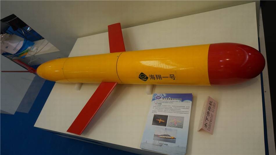 第17屆中國國際海事會展上展出的國產水下滑翔機“海翔一號”(飛揚軍事 同舟滅日 供圖)