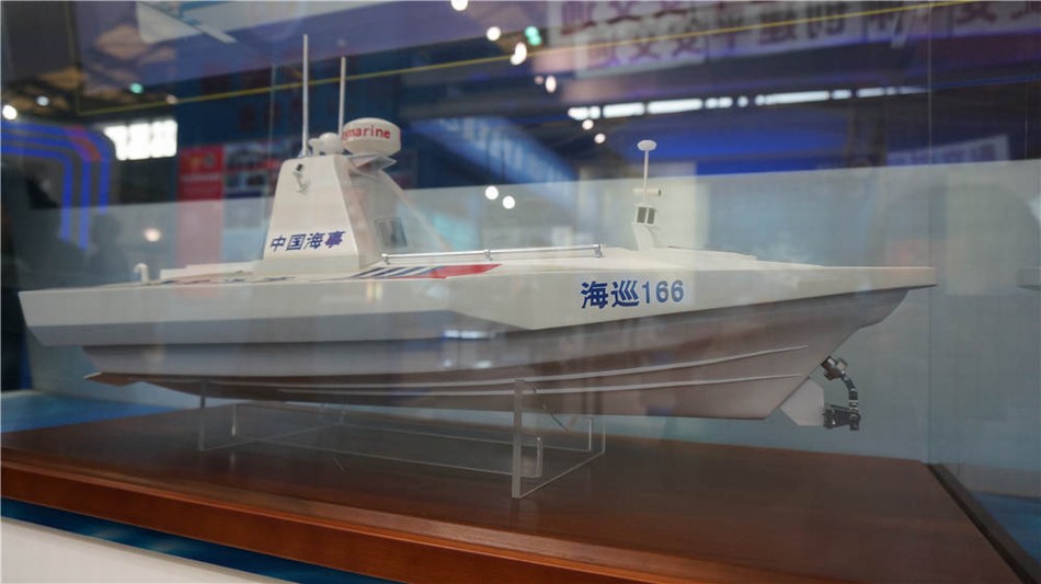 會展上出現(xiàn)的無人巡邏小艇模型(飛揚軍事 同舟滅日 供圖)