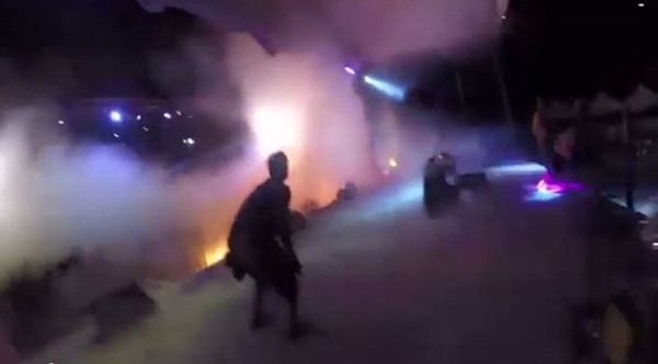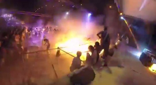 最新曝光的片段在舞臺上拍攝,舞臺工作人員當時用二氧化碳高壓氣體,將堆放在舞臺前方的彩粉噴向臺下觀眾,彩色粉末在舞臺前方飛散,大批民眾還沉浸在搖滾樂中,但當工作人員在噴第3次時,舞臺右上方突然冒出紅色火光,火勢向右前方觀眾燃燒。
