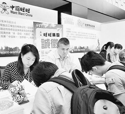 與此同時,臺灣的相關部門也積極幫助陸生就業。不久前,首場由私立大學校院協進會與海基會合辦的“2015大陸臺商菁英招聘會”在海基會大樓舉行,臺塑集團、可成科技、昶輝集團、臻鼎科技、天津臺商協會、蘇州臺商協會等29家臺商、臺協參與,有企業開出含津貼年終百萬年薪的條件,吸引數百位陸生與臺生參加。