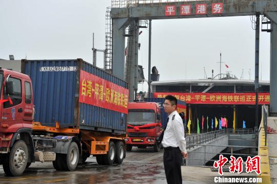 3日,來自臺灣的貨物搭乘“海峽號”在福建平潭澳前碼頭登岸,隨即運往江陰港。隨后,它們將被整裝上火車,跨越亞歐大陸,從新疆阿拉山口出關,最終抵達德國漢堡。
